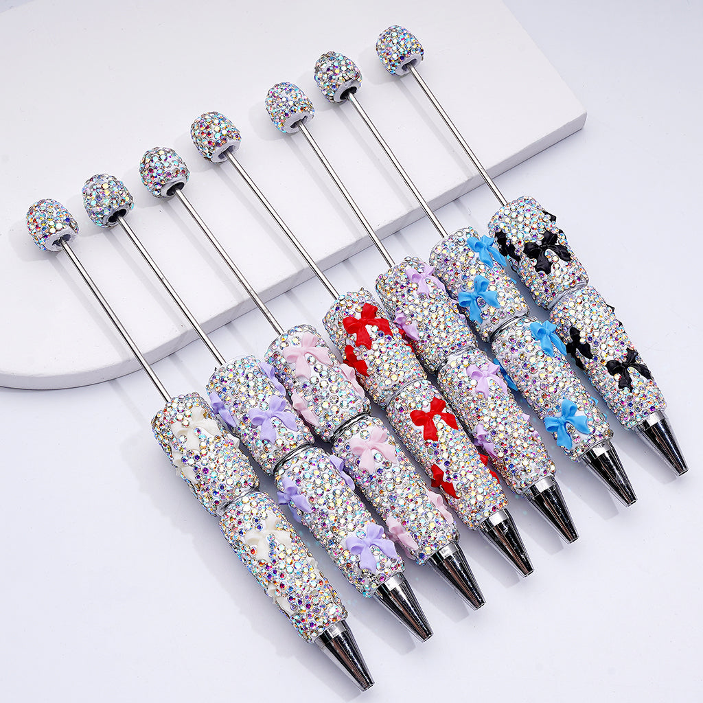 Beadable Clay Pens with Cute Bowknots AB Rhinestones Covered the Entire Pen