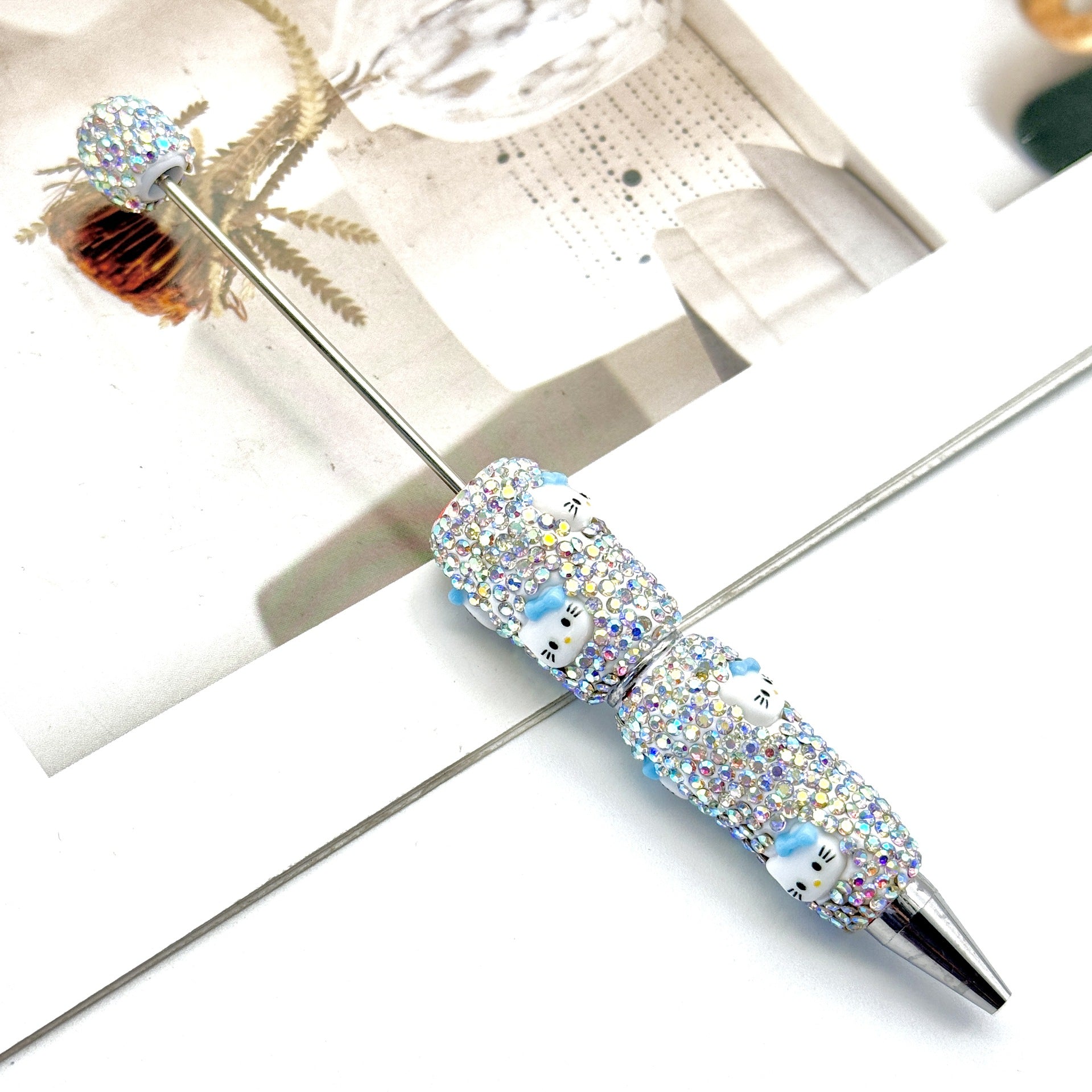 Beadable Clay Pens with Cute HK Kitten Head AB Rhinestones Covered the Entire Pen