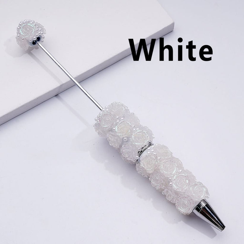 This beadable pen features a sophisticated design adorned with shiny glitter flowers and elegant white pearls, combining functionality with refined aesthetics. Ideal for professionals seeking a stylish writing instrument, it offers smooth ink flow and a comfortable grip, enhancing your writing experience while adding a touch of luxury to your desk or workspace.