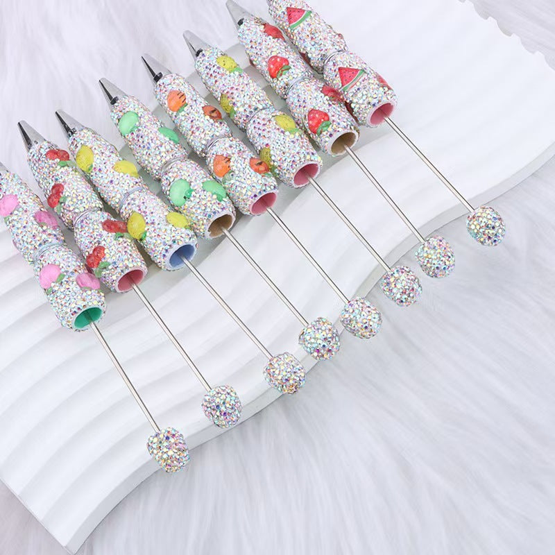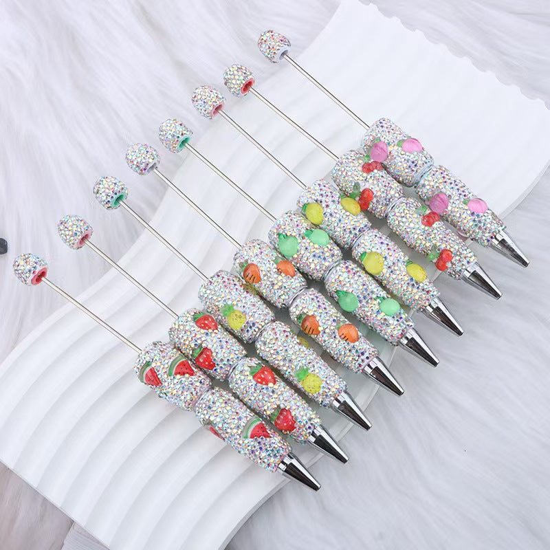 Creative DIY fruit bead pen, heavy industry full diamond ballpoint pen, watermelon strawberry pineapple carrot cherry cute pen