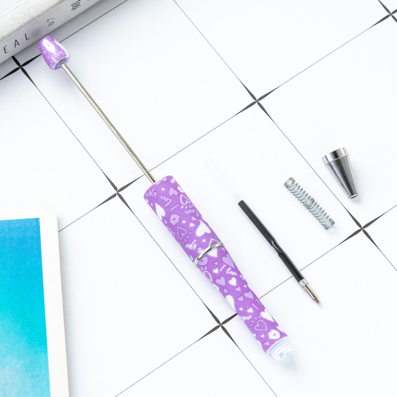 Creative DIY plastic bead pen Valentine's Day love series beaded ballpoint pen spot wholesale printing bead pen