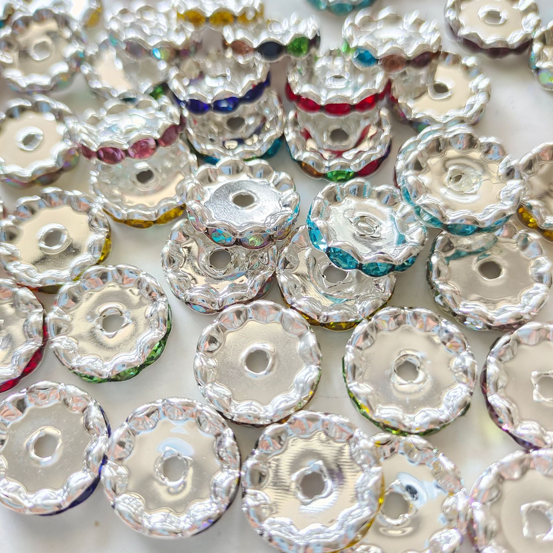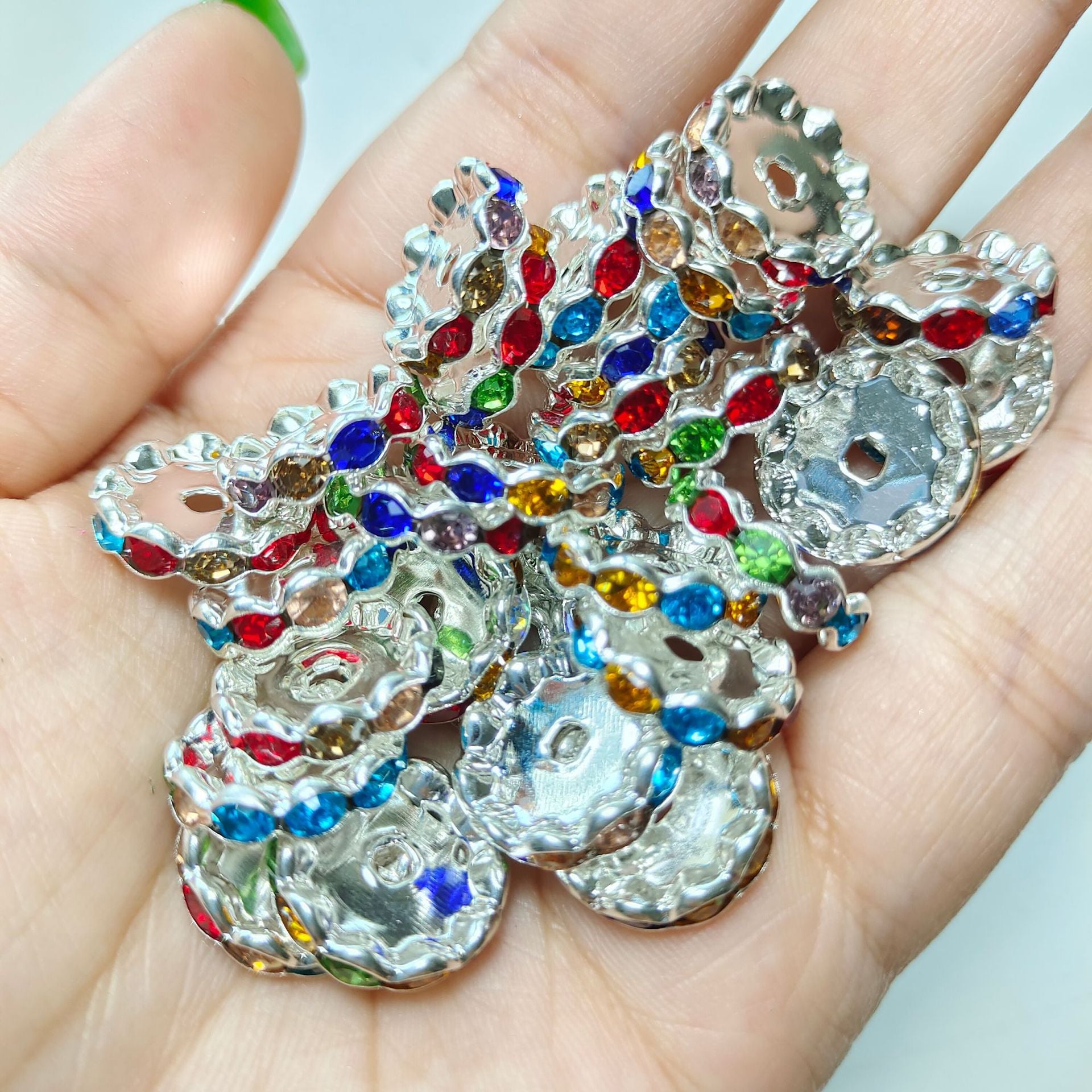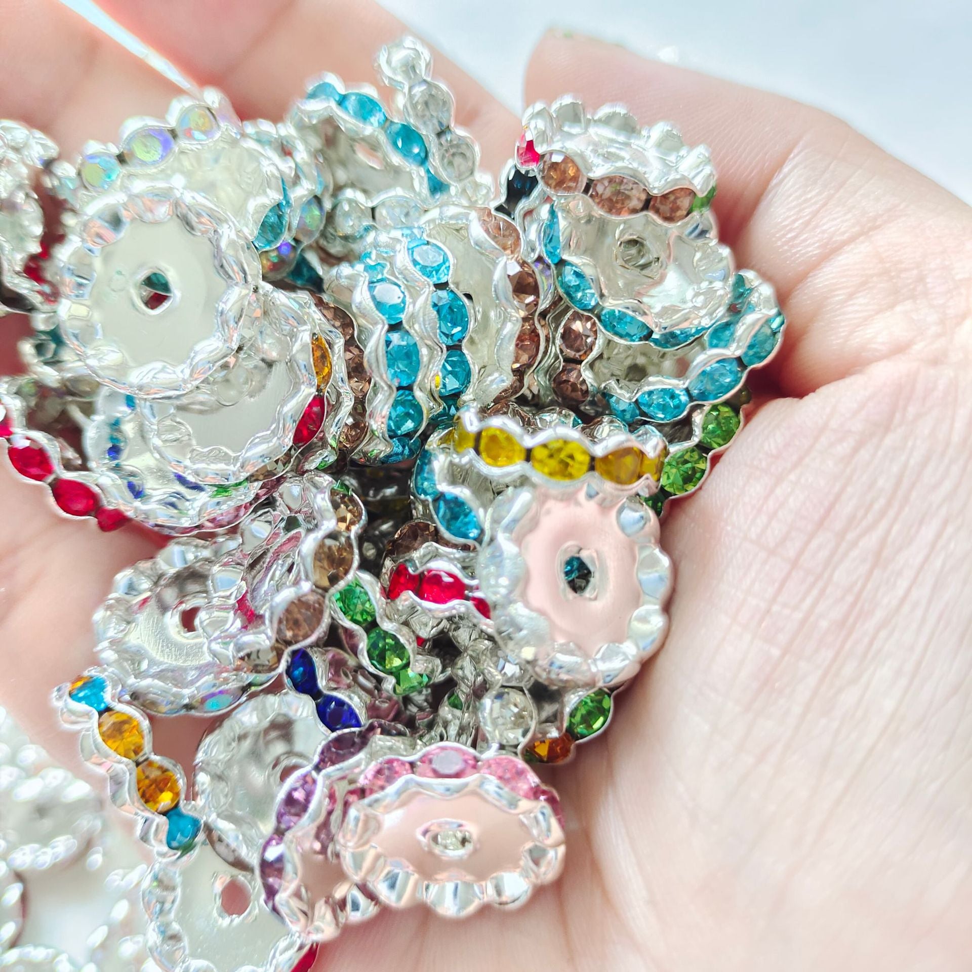 15mm Cross-border Hot-selling Silver Bead Spacer Round Rhinestone Ring Wheel Spacer Wavy Edge Diamond Spacer Accessories