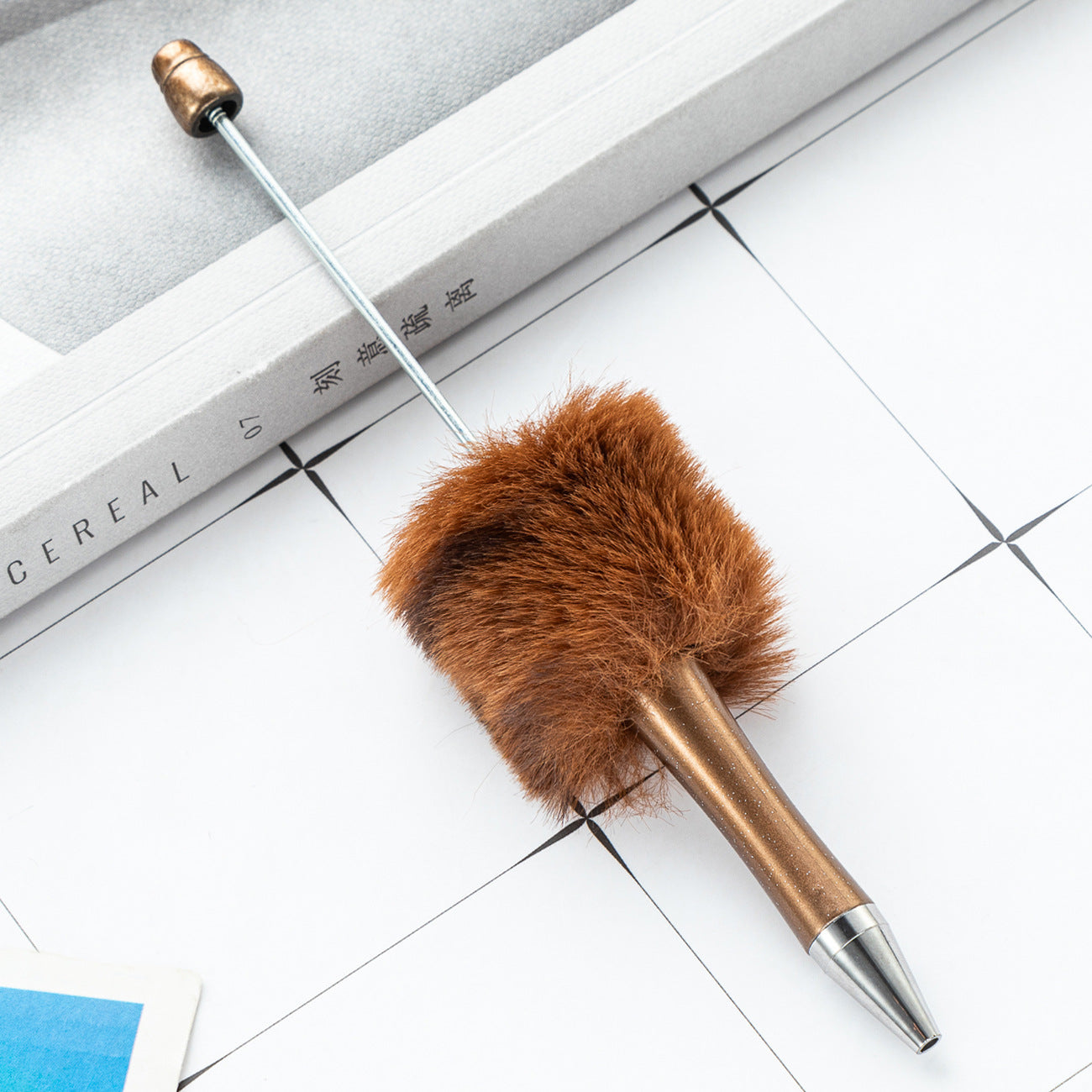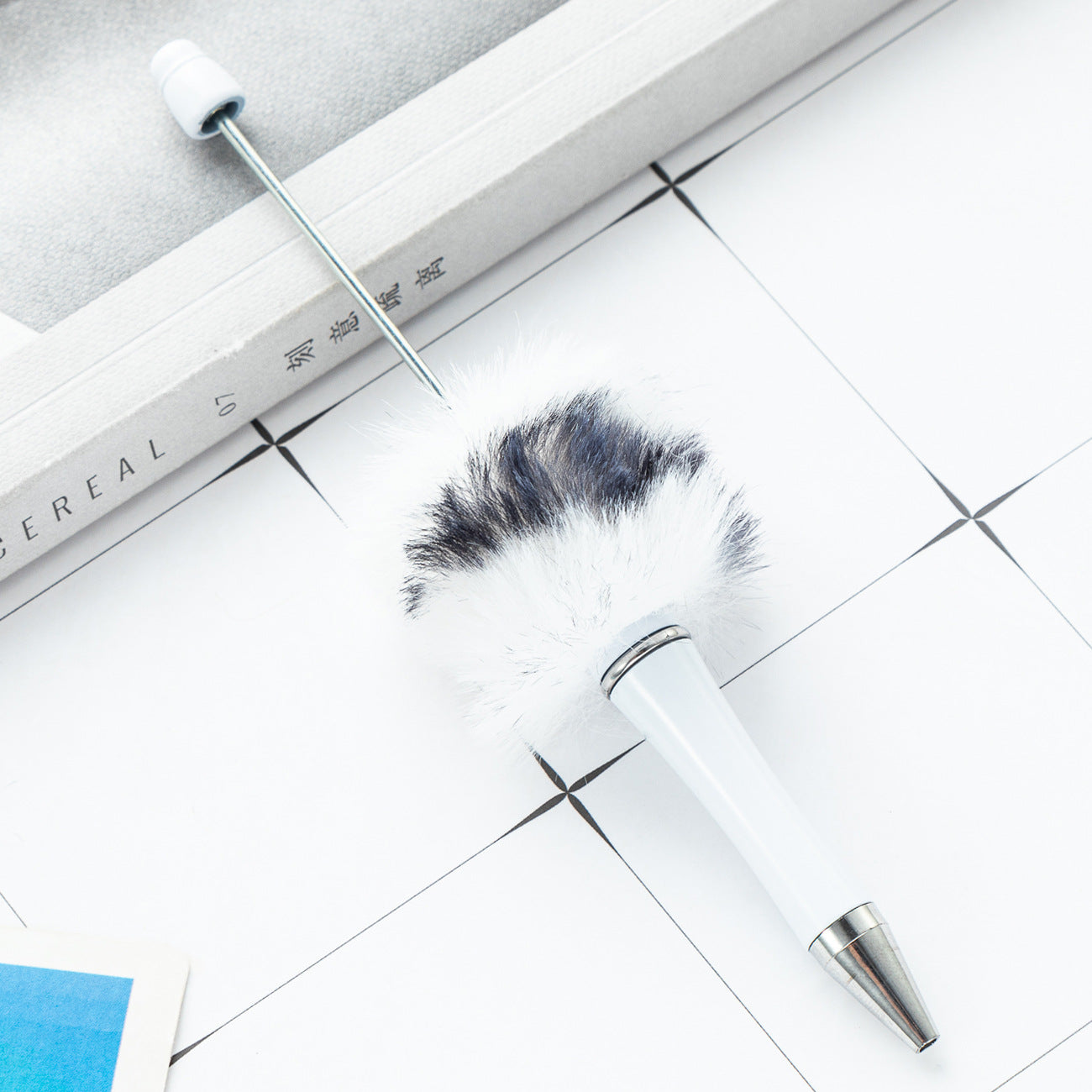 Cross-border plastic plush bead pen creative handmade DIY ballpoint pen new cartoon hairball bead pen wholesale