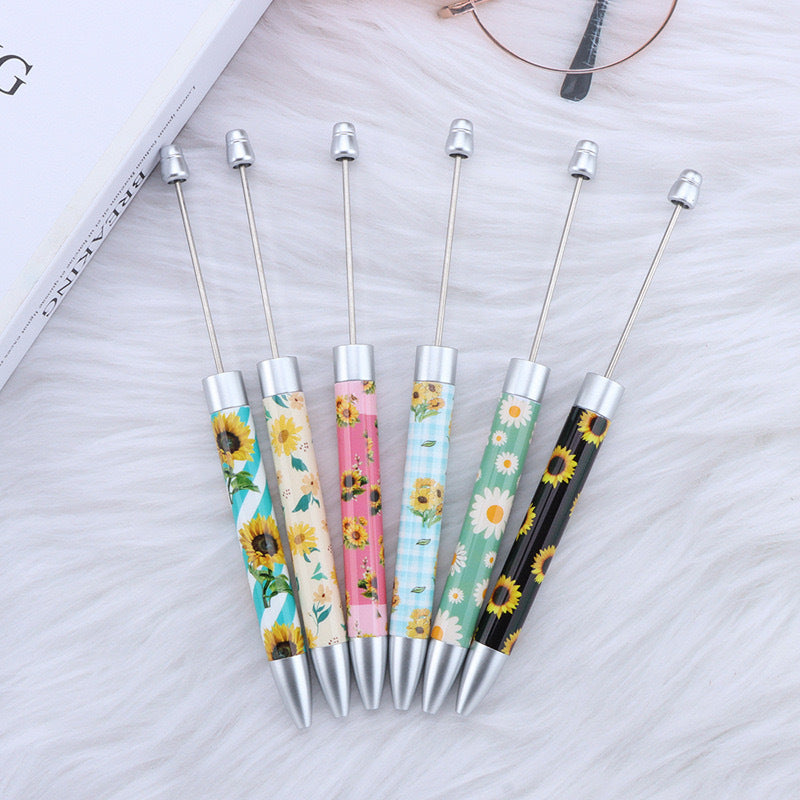 DIY long printed bead pen, national flag sunflower pattern creative cute grain bead pen plastic bead ballpoint pen