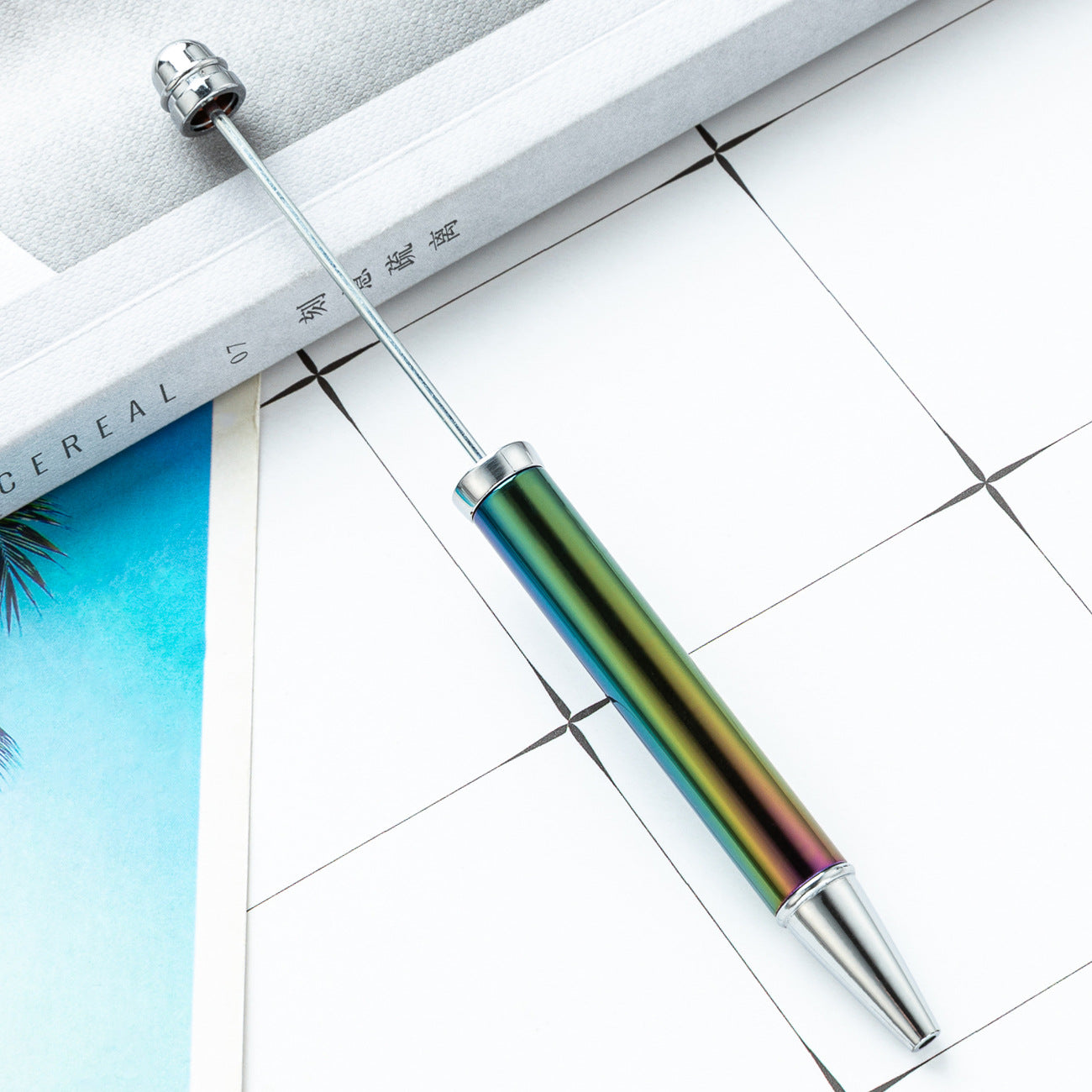DIY plastic bead pen wholesale UV electroplating colorful beaded ballpoint pen creative student plastic bead pen