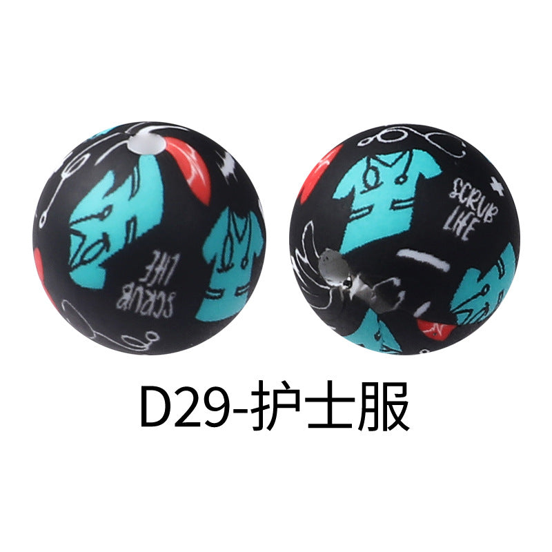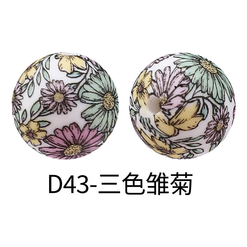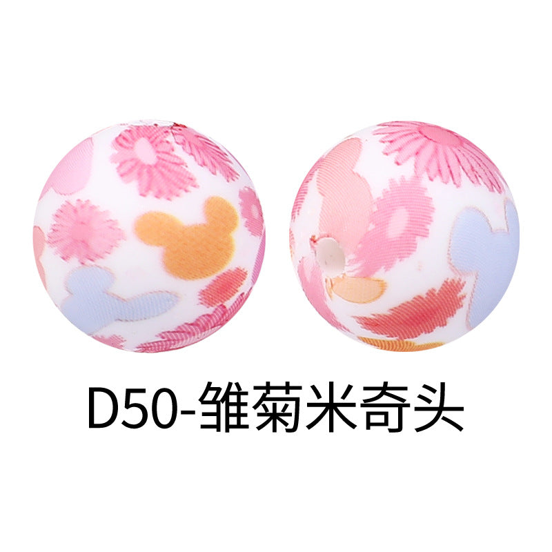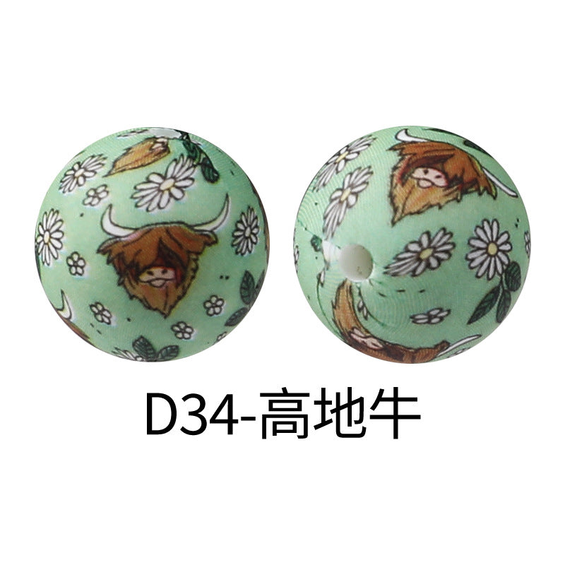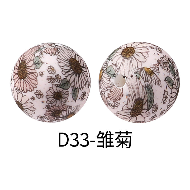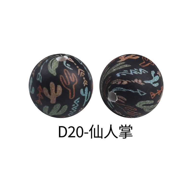 15mm new rhombus pattern silicone beads water transfer leopard print bracelet beaded jewelry silicone loose beads wholesale