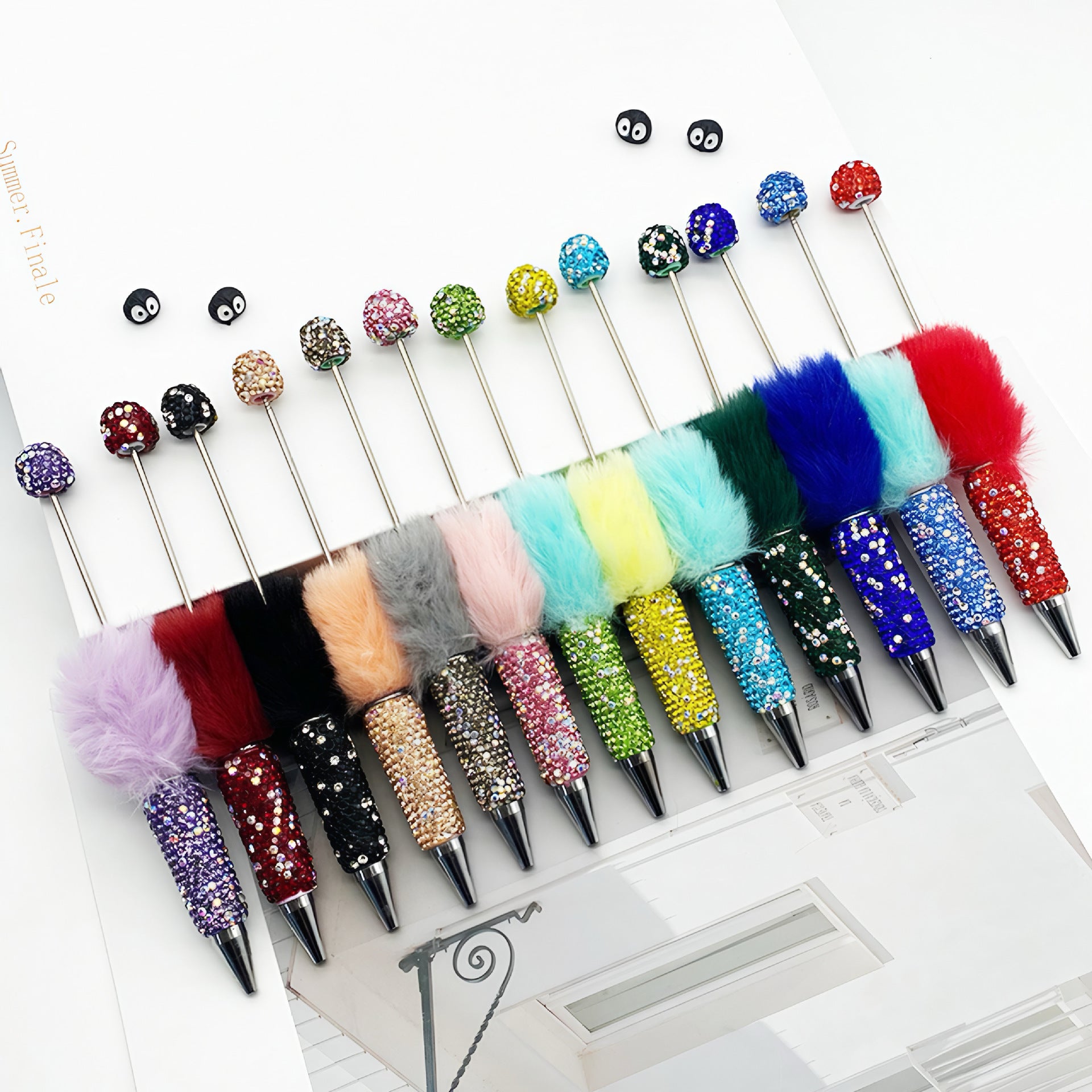 Hairball AB full drill bead pen, pen cap with drill pure hand sticker drill ballpoint pen beadedpen cute plush pen