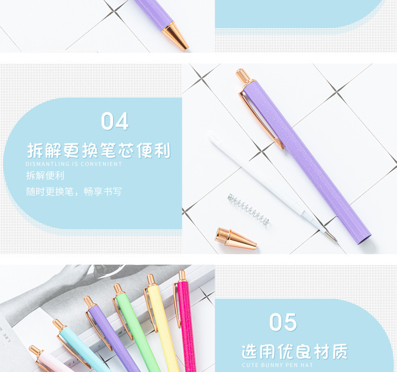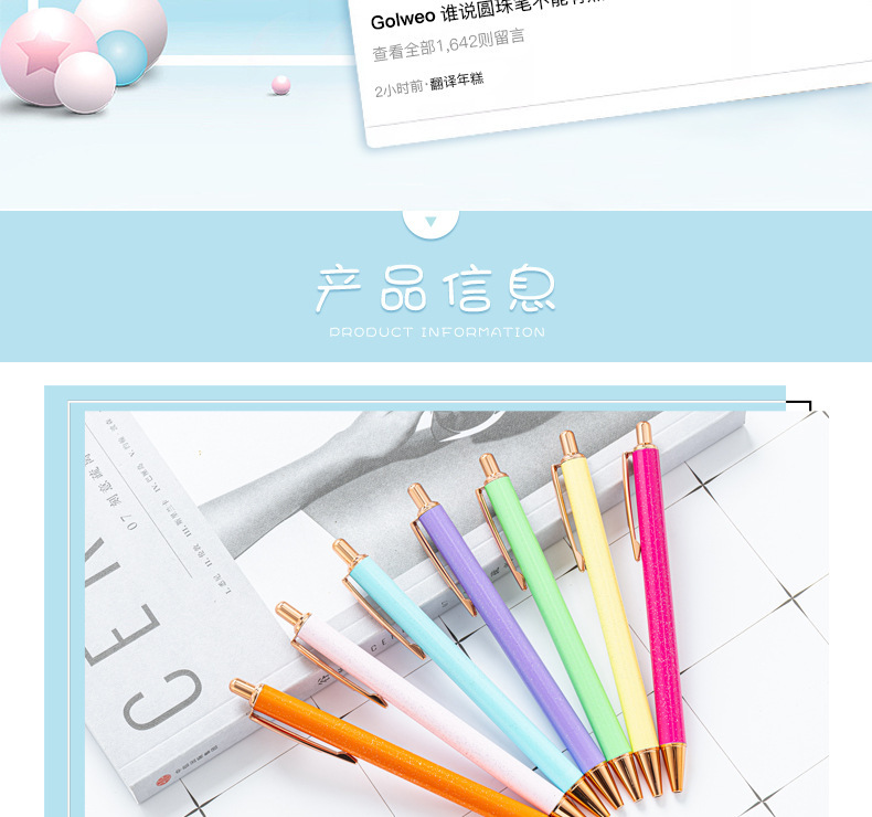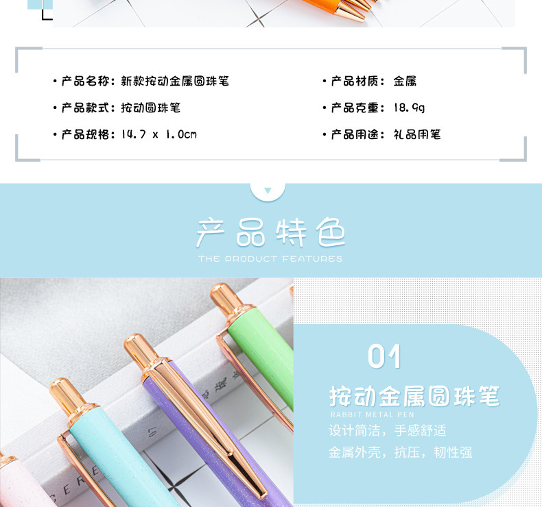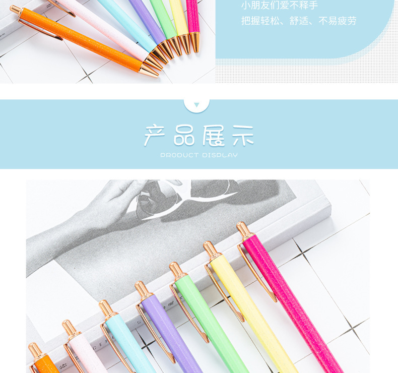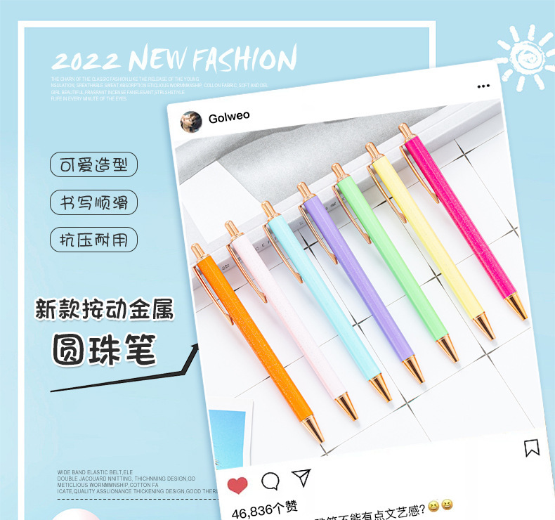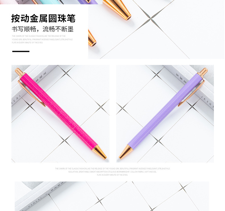 High-value metal press ballpoint pen, new creative glitter, metal stationery pen for students, spot press pen