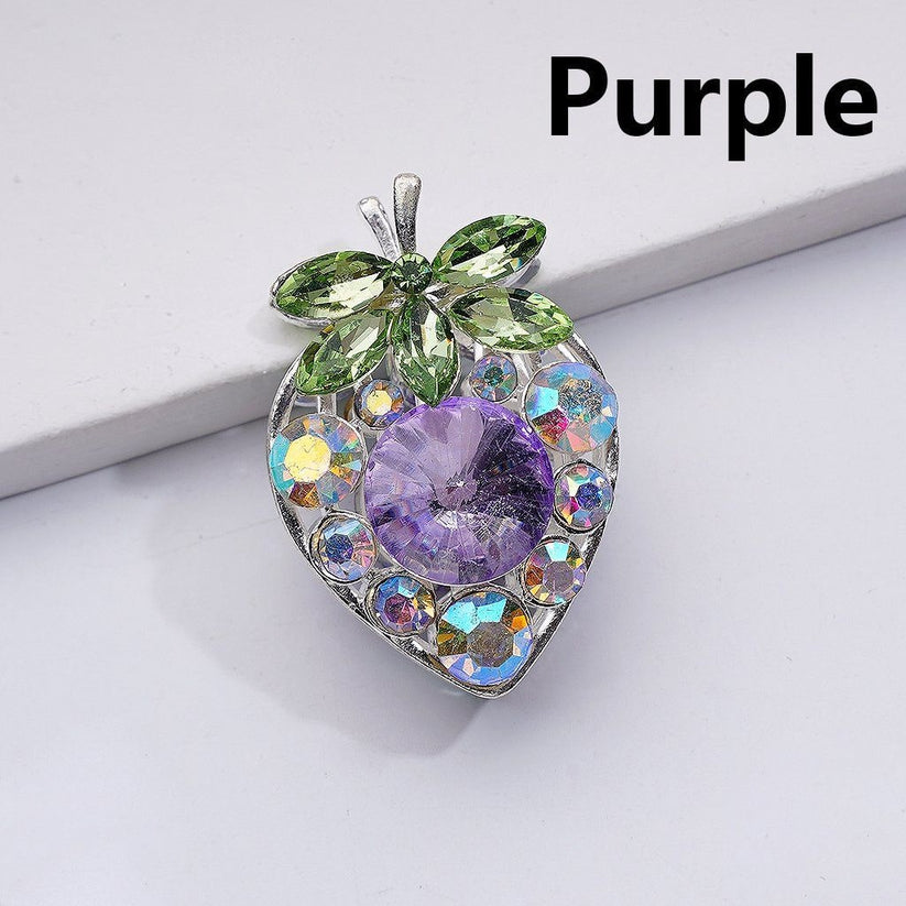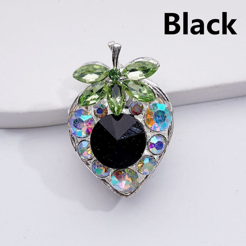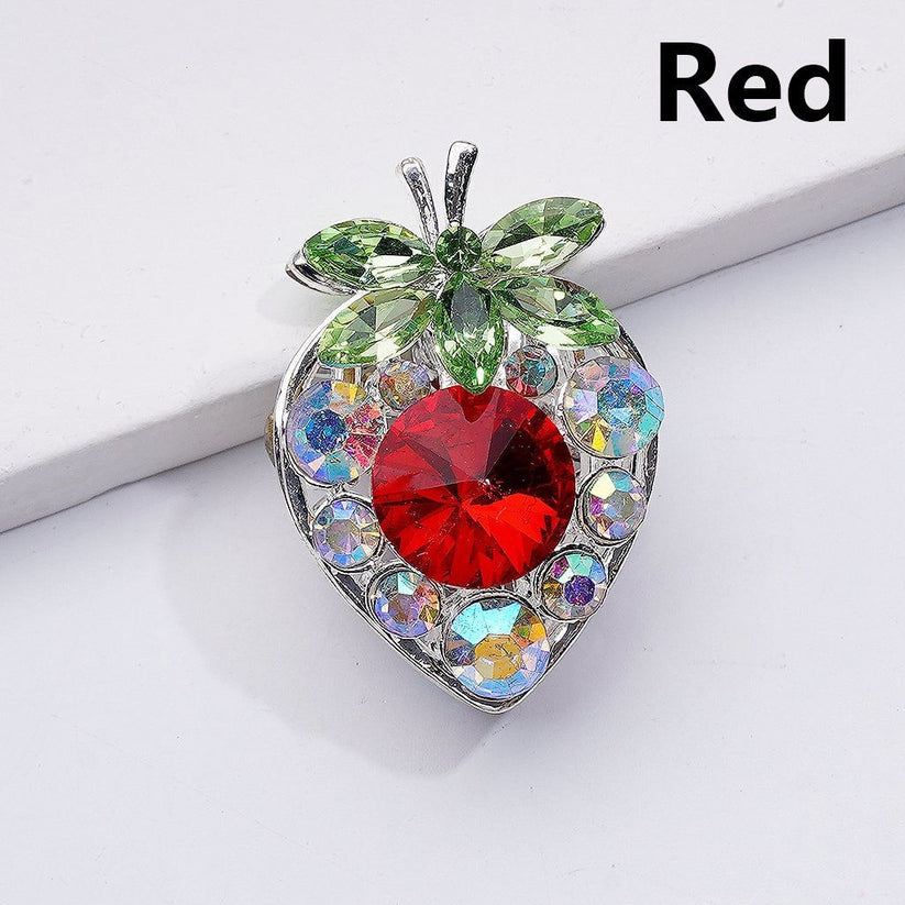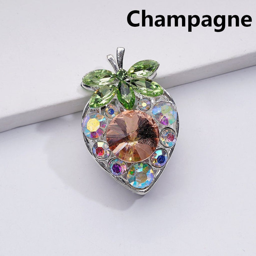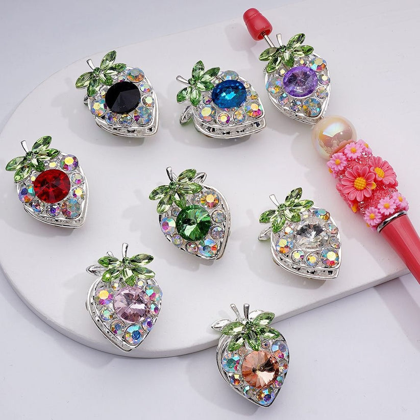 These fancy silver alloy strawberry beads feature vibrant multi-color cone-shaped AB rhinestones and detailed green leaf accents, measuring 22 by 33 mm. Expertly crafted, they add a unique, eye-catching element to jewelry designs, enhancing both texture and color for sophisticated, standout pieces.