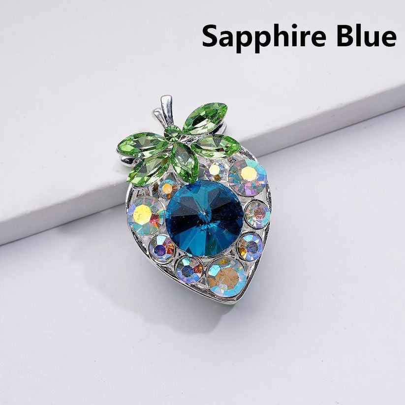 Fancy Silver Alloy Starwberry Beads with Multi-Color Cone Shape Green Leaf AB Rhinestones, 22*33MM