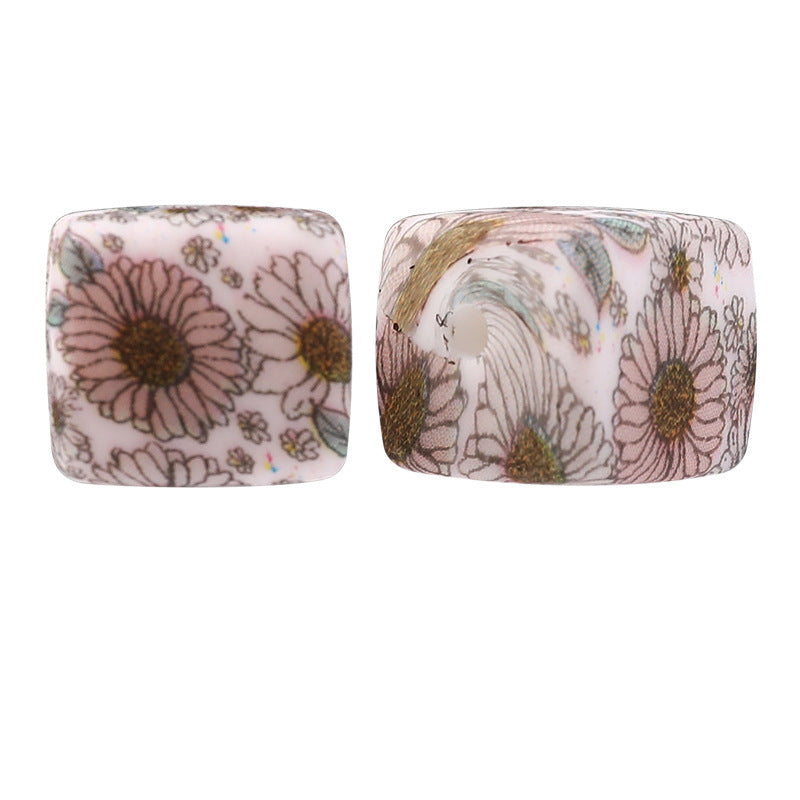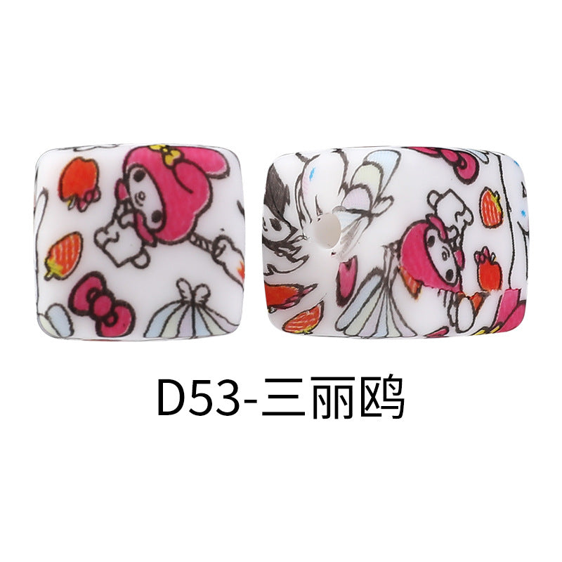 New Square Watermark Silicone Beads 14mm Beaded Spacer DIY Necklace Accessories Square Printing Beads Wholesale