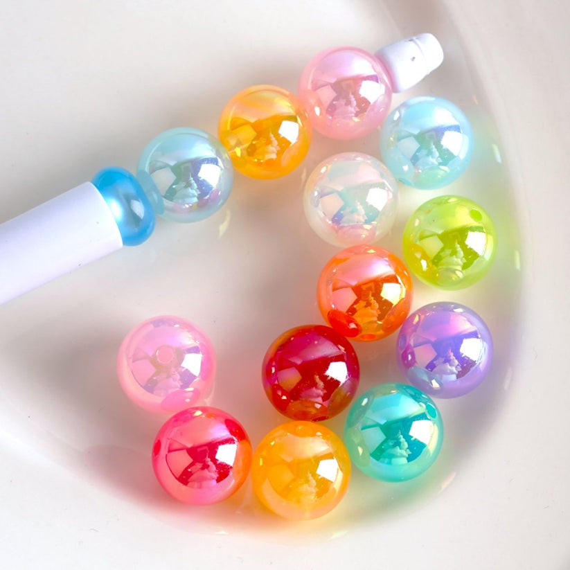 These 16mm round acrylic beads feature a UV coating that delivers a shiny, glossy finish with vibrant, colorful hues. Ideal for jewelry making and craft projects, their durable surface resists fading and maintains brilliance over time. Perfect for adding a professional touch to your designs, these beads combine aesthetic appeal with lasting quality.